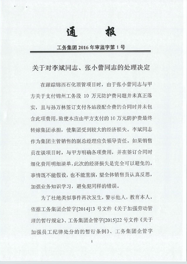 上一篇:工務(wù)集團(tuán)2016年審監(jiān)字第5號《關(guān)于對朱文帥同志的處理決定》...