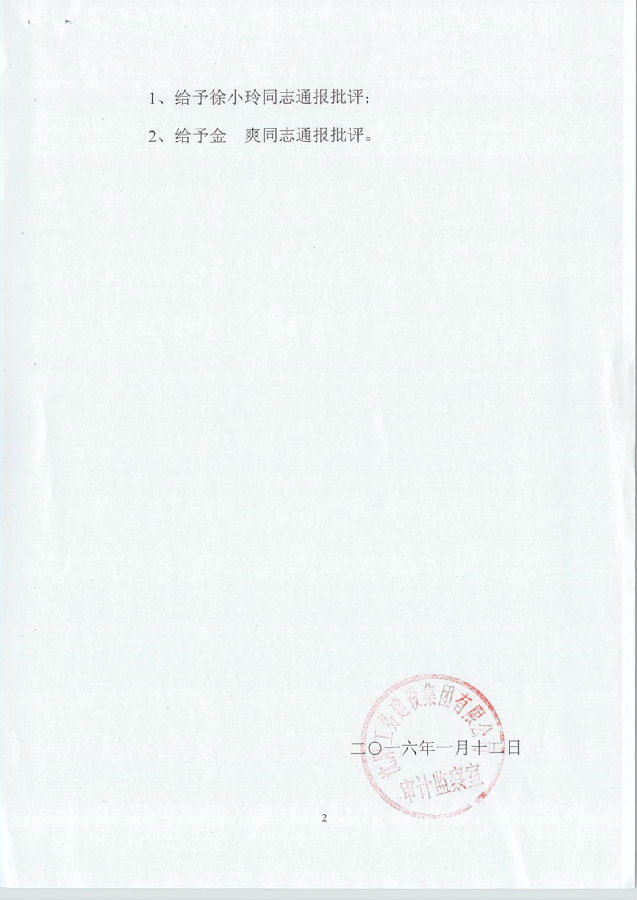 上一篇:工務(wù)集團(tuán)2016年審監(jiān)字第5號《關(guān)于對朱文帥同志的處理決定》...